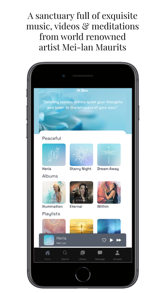 De Mei-lan app biedt gebruikers toegang tot een uitgebreide catalogus van muziek, meditaties en video's van de wereldberoemde artiest Mei-lan Maurits. Deze gratis multimedia-app is ontworpen om gebruikers te ondersteunen in hun zoektocht naar mindfulness en emotionele balans. Met een focus op welzijn, biedt de app onder andere een slaapalbum en een dagelijkse programma genaamd The Healing Journey, dat gericht is op het verlichten van stress en het bevorderen van innerlijke rust.